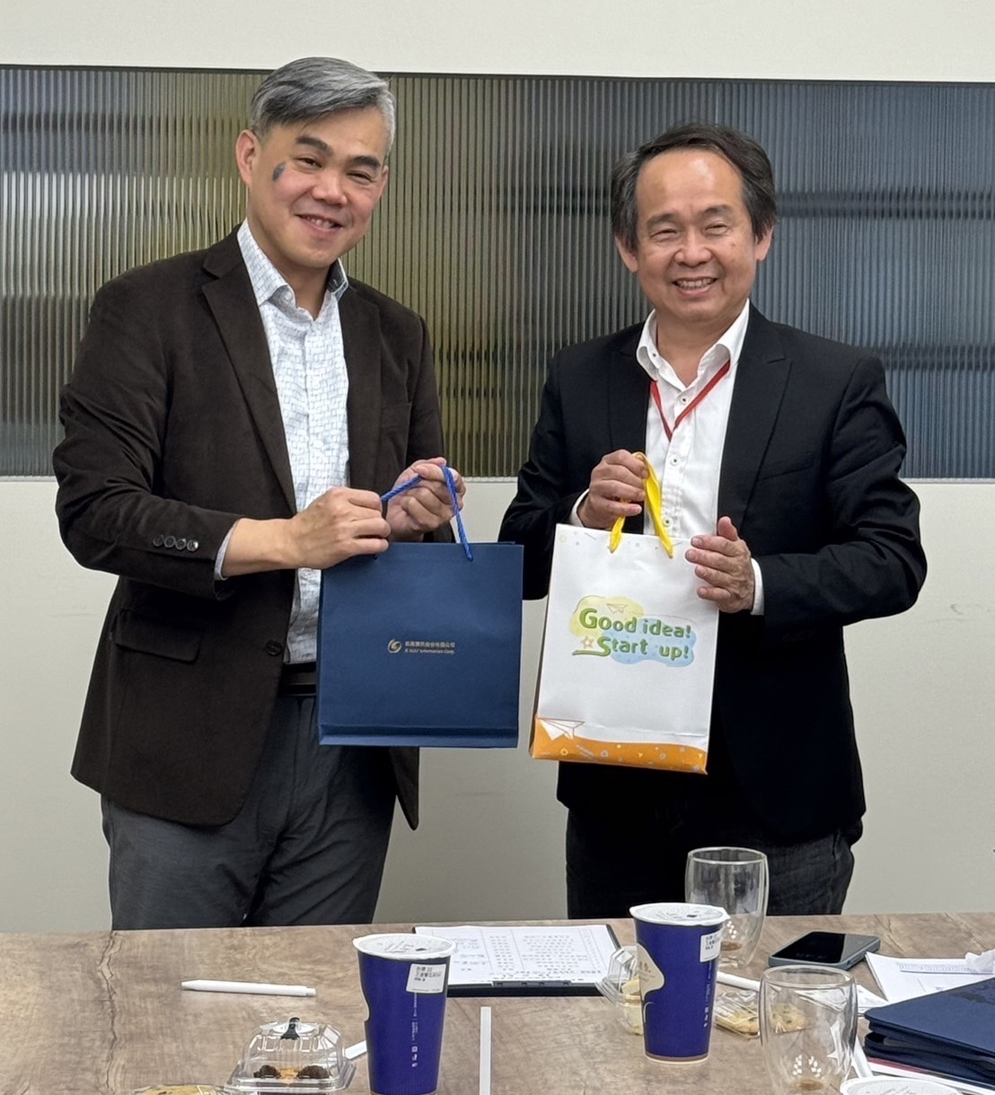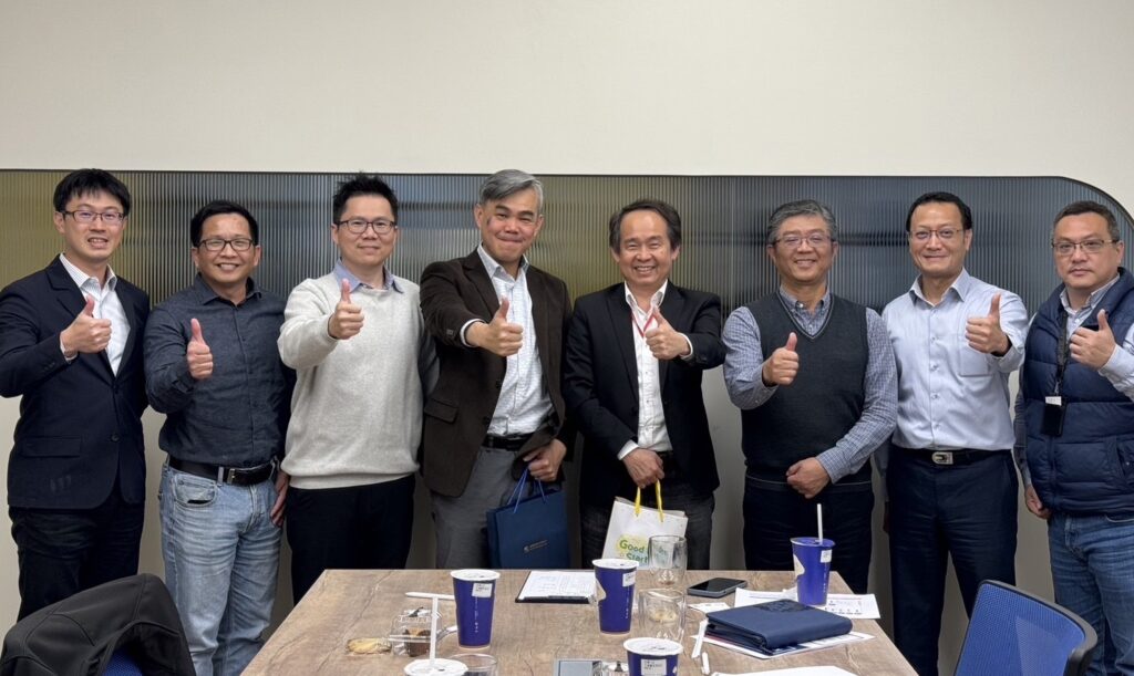 董事長帶領總經理與兩位副總,拜訪中央大學管理學院葉院長、產學營運中心胡主任與林經理等專家學者,討論未來產學合作的發展方向。